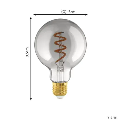 Descrizione Eglo LED Globe E27 Filamento Smokey 4W 100lm - 820 Bianco Molto Caldo | Dimmerabile - Sostitutiva 15W