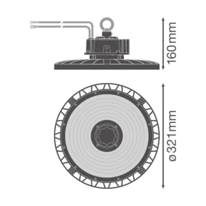 Descrizione Ledvance Highbay LED Gen 5 Aluminium Nero 150W 26250lm 70D - 865 Luce Del Giorno | IP66 - 1-10V Dimmerabile