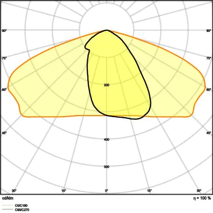 L'alloggiamento impermeabile di questa sorgente luminosa non è l'unica ragione per cui è perfetta per l'uso all'aperto. Infatti bisogna considerare anche la distribuzione della luce di questa lampada stradale, che ha apertura del fascio luminoso di 25x145° ed emette luce di colore 4000K - Bianco Freddo.