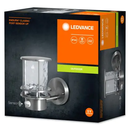 Descrizione Ledvance Luce da parete Post Endura Classic E27 Steel | Up - Sensore di movimento e luce