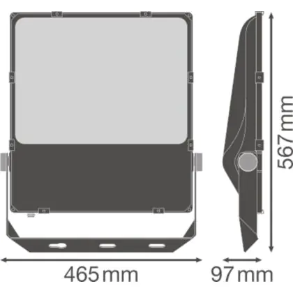La copertura ottica in vetro temperato permette una distribuzione luminosa uniforme. In pochi secondi dall’accensione questo proiettore LED Ledvance raggiunge la luminosità massima di 35600 lm. Il flusso luminoso emesso è asimmetrico (55° x 110°).