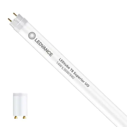 Il Ledvance Tubo LED T8 Superior (EM/Mains) Ultra Output 14W 2600lm - 940 Bianco Freddo | 120cm - Best Color Rendering - Sostitutiva 36W è l’alternativa perfetta per il tubo fluorescente standard 36W nelle plafoniere con un reattore. Con questo tubo LED hai una garanzia di una vita media utile molto lunga e 5 anni Lampadadiretta.it di totale garanzia. .