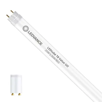 Il Ledvance Tubo LED T8 Value (EM/Mains) Ultra Output 20W 2400lm - 865 Luce del Giorno | 120cm - Sostitutiva 36W è l’alternativa perfetta per il tubo fluorescente standard 36W nelle plafoniere con un reattore. Con questo tubo LED hai una garanzia di una vita media utile molto lunga e 5 anni Lampadadiretta.it di totale garanzia. .