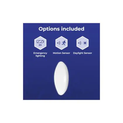 Descrizione Noxion Bulkhead LED Corido Bianca 16W 1600lm 830-840-865 CCT | IP44 - Emergenza 3h - Sensore di Movimento e Luce