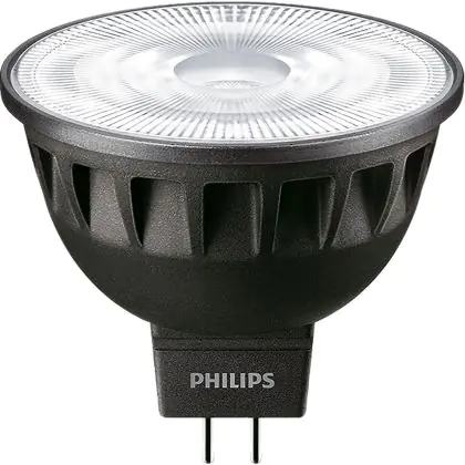La Philips Master LED Faretti GU5.3 MR16 6.7W 460lm 36D - 940 Bianco Freddo | Miglior resa cromatica - Dimmerabile - Sostitutiva 35W è perfetta per la sostituzione della classica lamapda alogena35W GU5.3 con colore della luce 940 Bianco Freddo. Questa lampadina ha una forma Spot con un diametro di 50mm. La distanza tra I due pins è di 5.3mm. Queste lampade hanno bisogno di un trasformatore poiché operano a 12V. I trasformatori possono essere trovati in "Accessori" su questa pagina. Qual’è il trasformatore adatto? Dipende dal numero di lampade che si vuole installare. Il nostro servizio di vendita e assistenzati ti aiutera nella scelta. Passare a LED offre molti vantaggi!