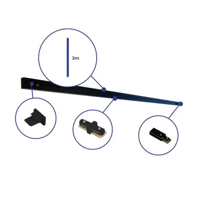 Rail Set 1-Fase 3 Metro Nero | incl. Tappo Di Chiusura, Connettore di Alimentazione e L-Connettore