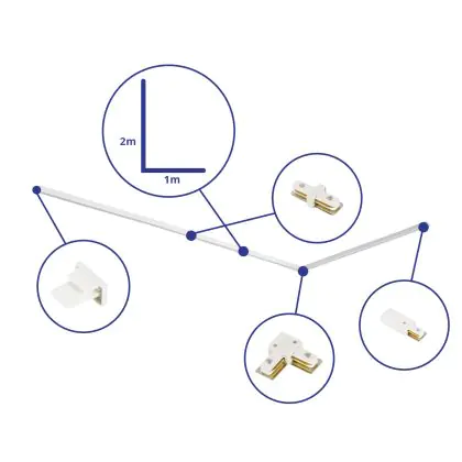 Rail Set 1-Fase L 1 x 2 Metro Bianca | incl. Tappo Di Chiusura, Connettore di Alimentazione e L -Connettore
